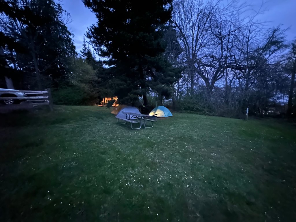 Fay Bainbridge Park is an ideal place for camping. There are a number of spots to choose from, whether you prefer to be close to the beach or nestled within the park under the shade of the large Douglas fir trees that PNW is known for. Either way, you’re sure to have a great time. We decided to camp under the trees for two main reasons: first, there was rain in the forecast for the weekend, and second, beaches can be windy, which means you need very strong stakes for your tent.
