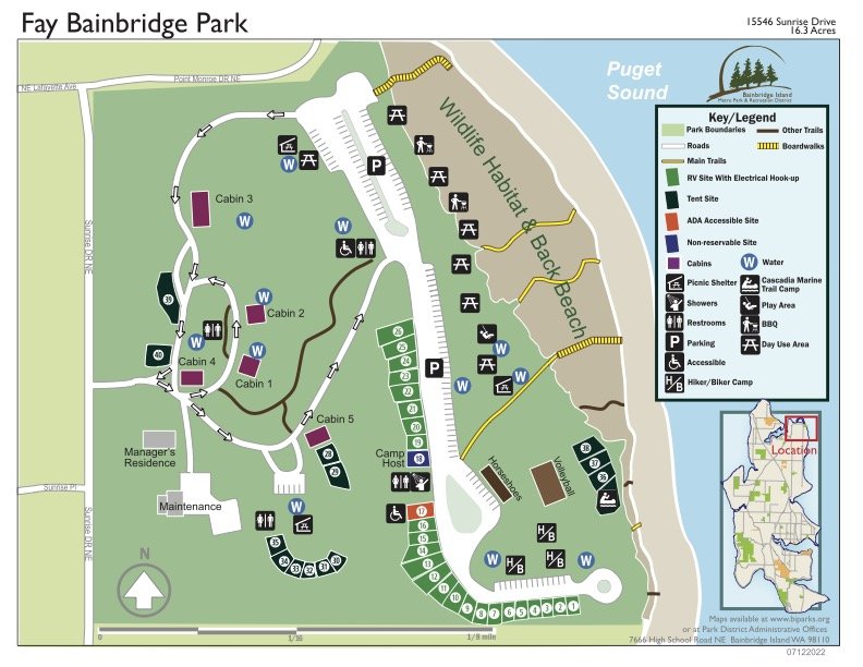 The first step is to plan your route. Choose a destination that is achievable in a day’s ride and has a campsite or a place where you can pitch your tent. Take into account the terrain and elevation changes, as well as the weather forecast. It’s always a good idea to have a backup plan in case of unexpected changes. We decided to stay close to home and chose the Fay Bainbridge Park just a ferry hop away from Seattle.